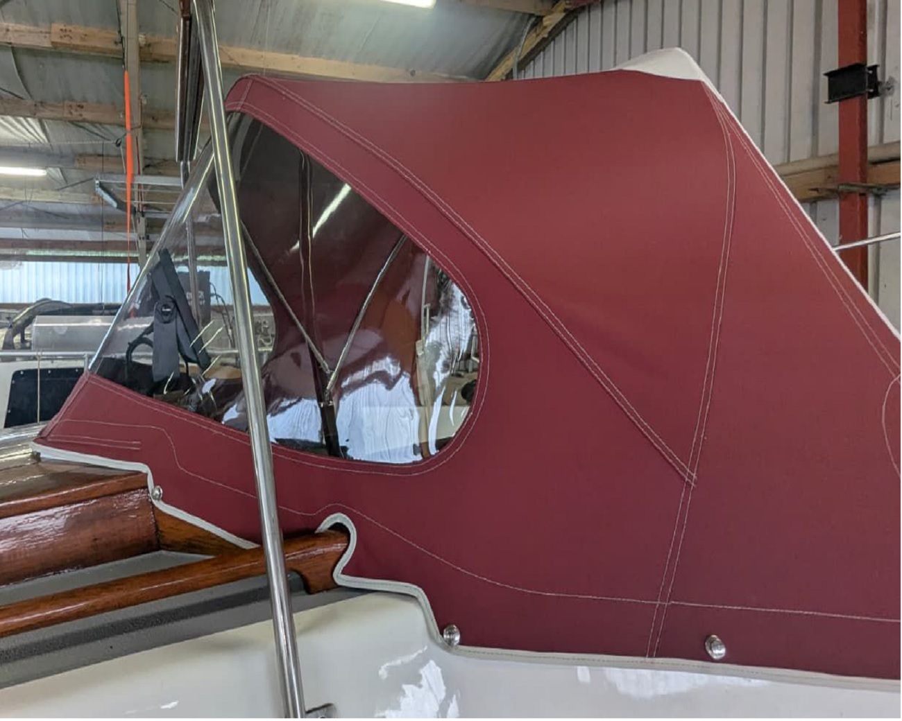 Lange Zeit war es daher ruhig in diesem Bereich. Seit einigen Monaten können wir jedoch mit großer Freude berichten, dass wir wieder Sprayhoods und Kuchenbuden anbieten. Seit nunmehr knapp einem halben Jahr läuft die Produktion wieder erfolgreich an. Gemeinsam mit Lea haben wir begonnen, Verdecke anzufertigen, und konnten in den vergangenen Monaten bereits mehr als ein Dutzend Sprayhoods und Kuchenbuden bauen.